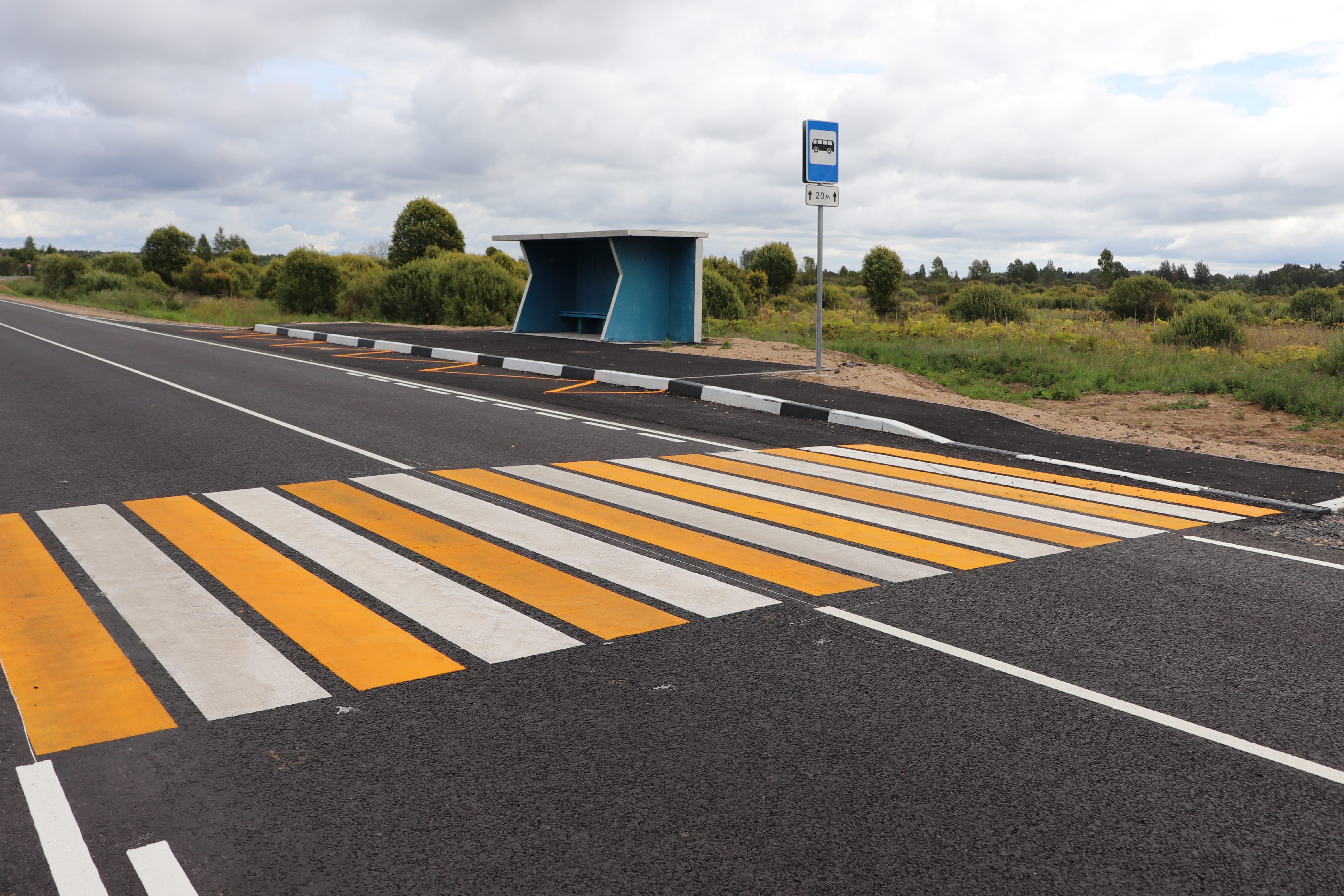 Для обеспечения безопасности движения на объекте установили металлические ограждения, разделяющие встречные потоки, краевые металлические ограждения на необходимых участках, а также дорожные знаки и светофоры. Кроме того, специалисты обустроили остановочные пункты, освещение в зоне пешеходных переходов и тротуары, нанесли разметку из термопластика.