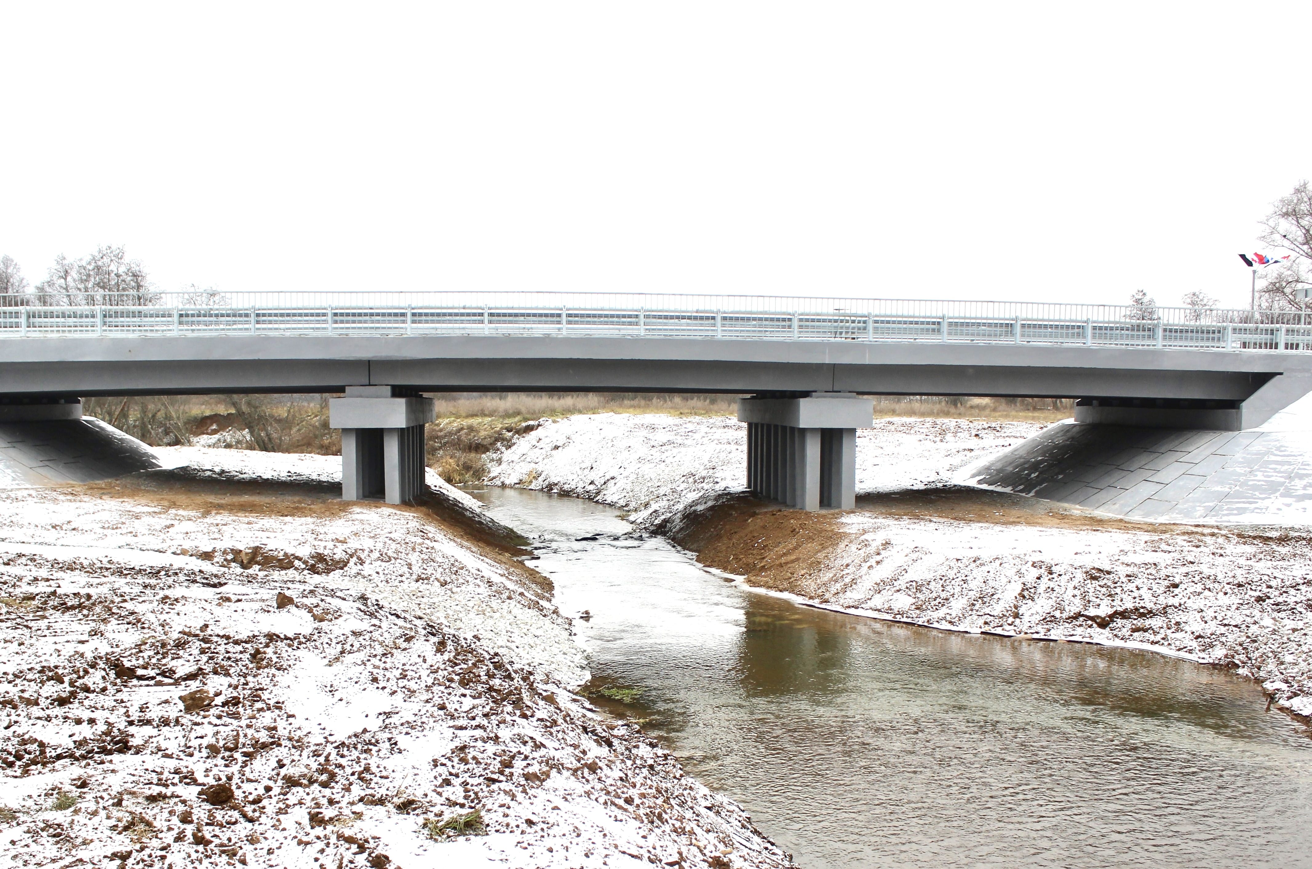 Работы на объекте велись с прошлого года. Теперь мост в железобетонном исполнении, балки по 12 м. Все железобетонные конструкции произведены в регионе на Можгинском предприятии. Протяженность нового сооружения составила 45,2 пог. м, грузоподъемность ― более 100 т. Гарантия составляет 8 лет.